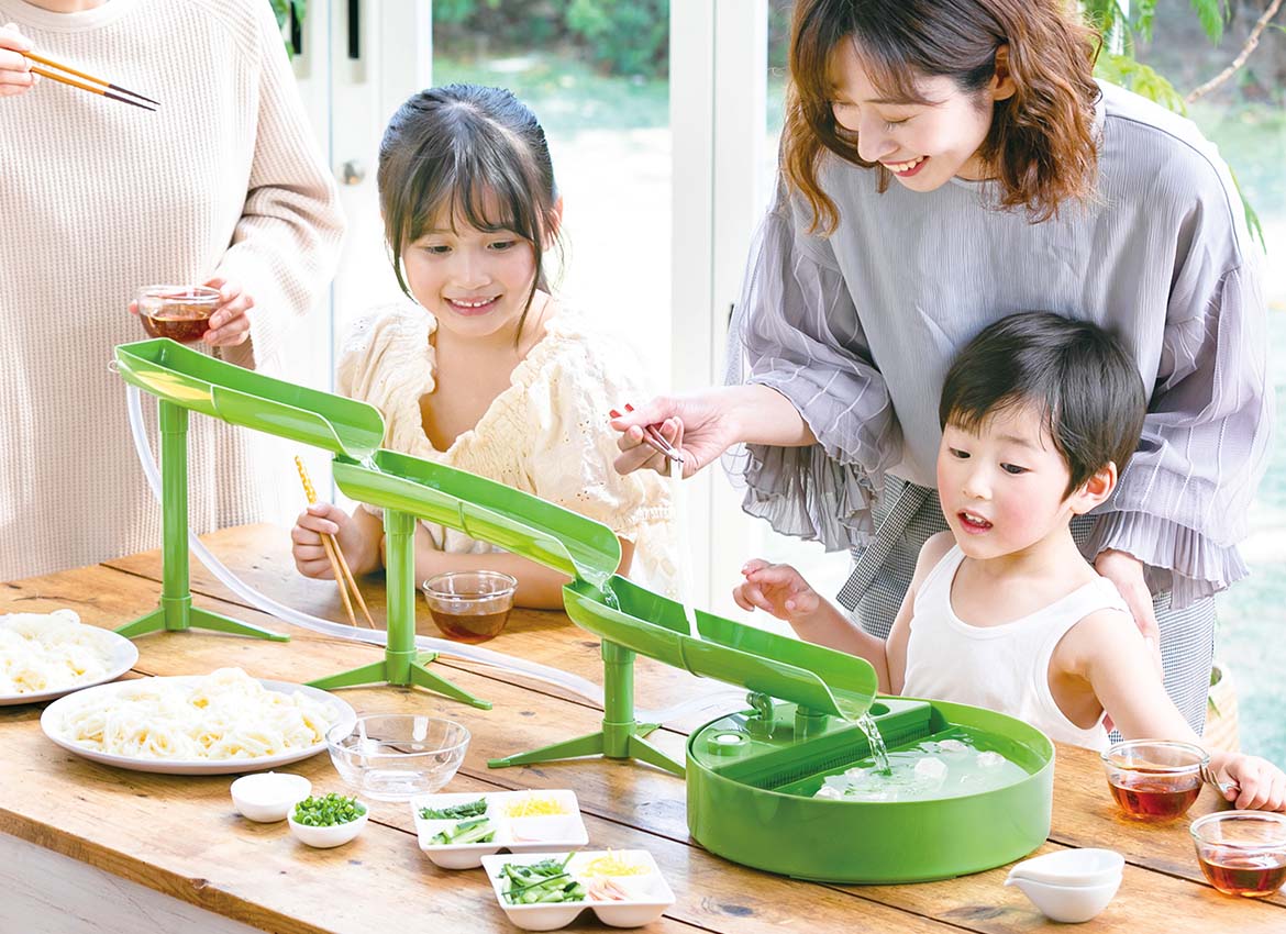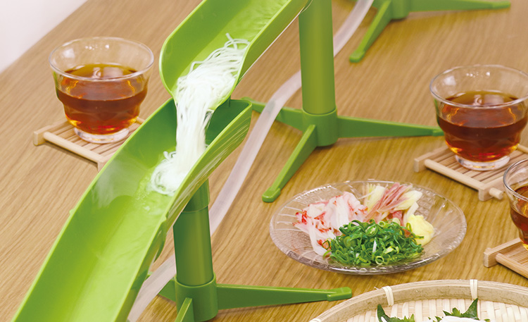 元祖流しそうめんのように、上から流れるタイプの卓上流しそうめん器。