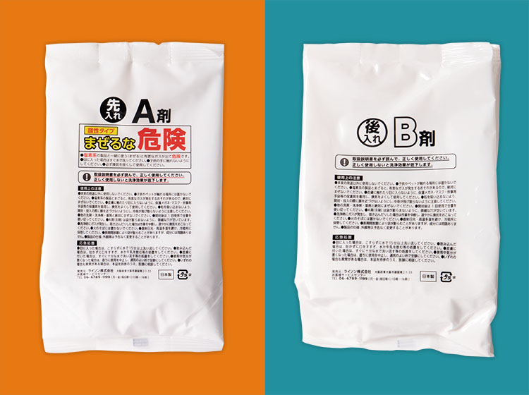 「B剤(弱アルカリ性)」が雑菌やぬめりを分解。