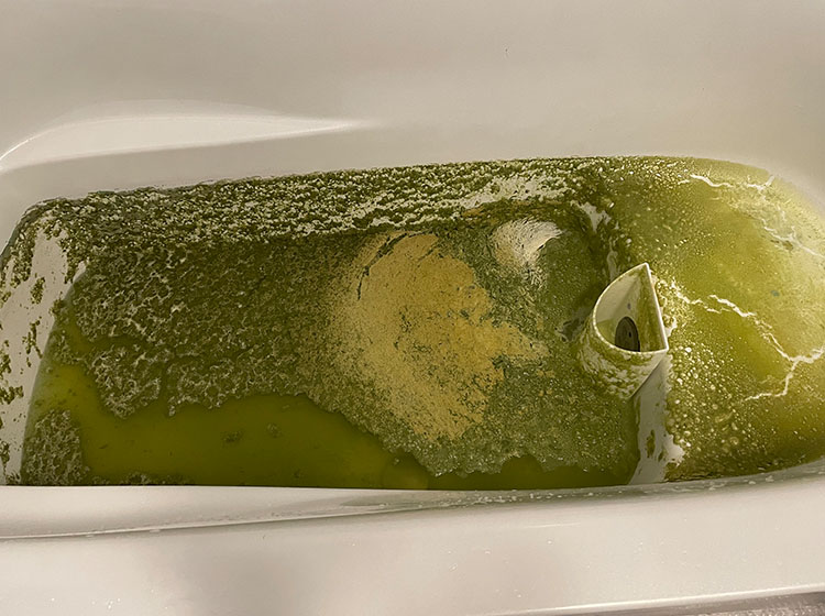 「B剤」を入れてから少し経つと、配管内の汚れが溢れ出てきます。